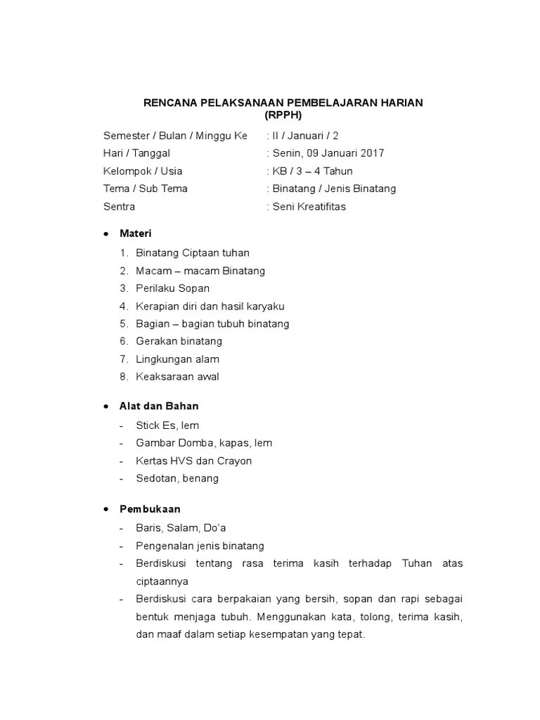 Rpph Paud Tema Hewan / Rpph Lili Pdf / Rpph paud tema anggota tubuh tatap muka dan daring.